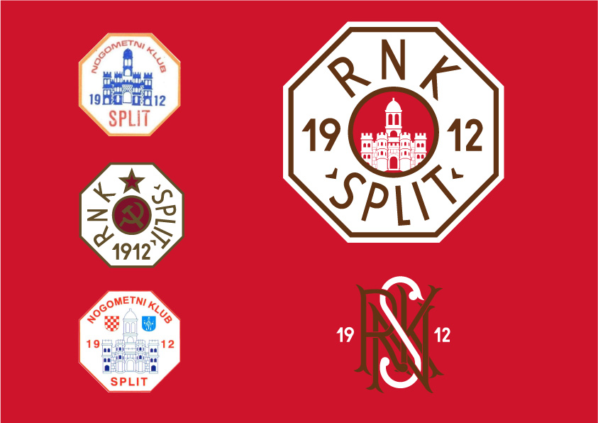 This is a submission for the updated logo for the RNK (workers football club) Split. At Locker Room 51 we only used the elements of the previous crest and created a crest that is free of any political elements with only the crest of the city inside, with the custom font surrounded. The colors of the club are red and white and through the years had blue, black or gold as accent color. We went step farther and took a color of rust as a accent color, to honor the workers (the shipyard workers were among the founders of the club). The secondary logo was created only to show the history of the club, as this kind of logo are associated with clubs with rich history.