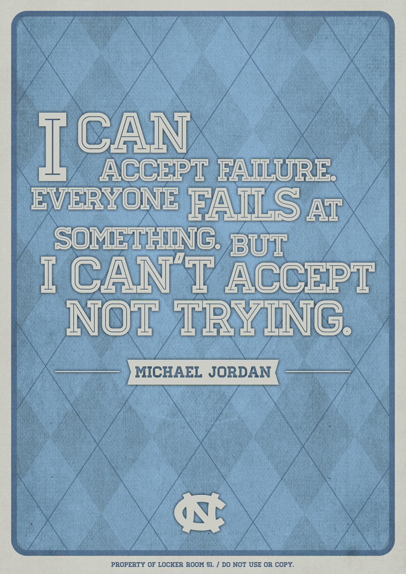 It’s March madness time. We had idea to create motivational posters for college athletic departments. Posters would be custom made for each school and quotes from famos alumni would be used where aplicable. Would be great to see those hanging in Dean Smith Center.