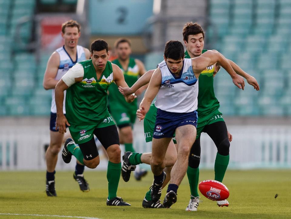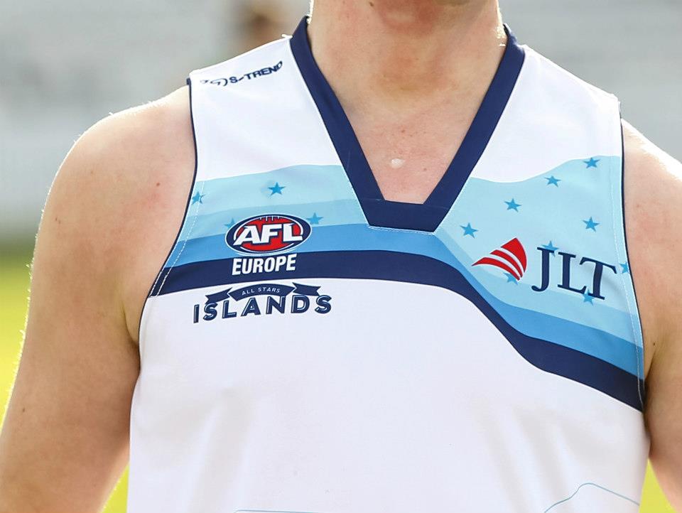 We decided not to go with typical red, white and blue color for all star matches, and to invent colors that would be more fitting for “Australian” all stars. Islands team has a white jumper with light blue to navy blue stripes representing waves, while continent team has green jumpers with yellow to light green stripes making mountins.
